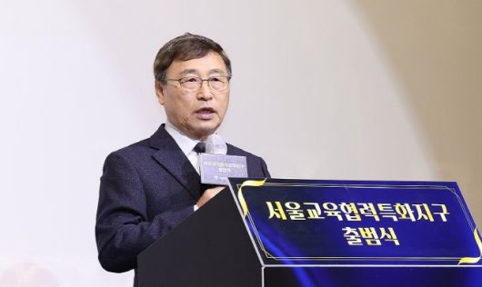 정근식 서울시교육감이 15일 서울 성동구 디노체컨벤션에서 열린 '서울교육협력특화지구 출범식'에서 축사하고 있다./연합뉴스 |