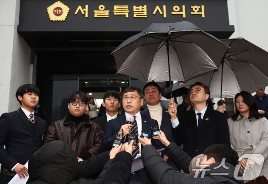 (서울=뉴스1) 김민지 기자 = 정근식 서울시교육감이 16일 오후 서울 중구 서울시의회 앞에서 학생인권조례 폐지 조례안 통과 관련 입장 발표 기자회견을 하고 있다. 시의회는 이날 제333회 정례회 제4차 본회의를 열어 '서울특별시 학생인권조례 폐지 조례안'을 재석 86명 중 찬성 65명, 반대 21명으로 가결했다. 2025.12.16/뉴스1