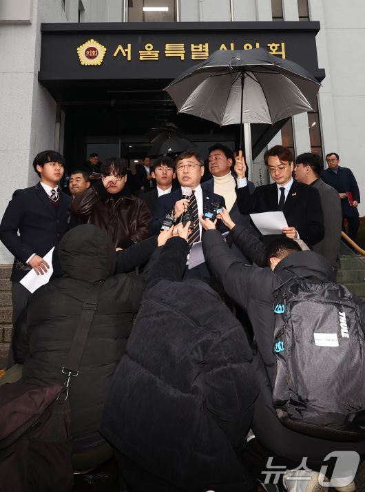 (서울=뉴스1) 김민지 기자 = 정근식 서울시교육감이 16일 오후 서울 중구 서울시의회 앞에서 학생인권조례 폐지 조례안 통과 관련 입장 발표 기자회견을 하고 있다. 시의회는 이날 제333회 정례회 제4차 본회의를 열어 '서울특별시 학생인권조례 폐지 조례안'을 재석 86명 중 찬성 65명, 반대 21명으로 가결했다. 2025.12.16/뉴스1