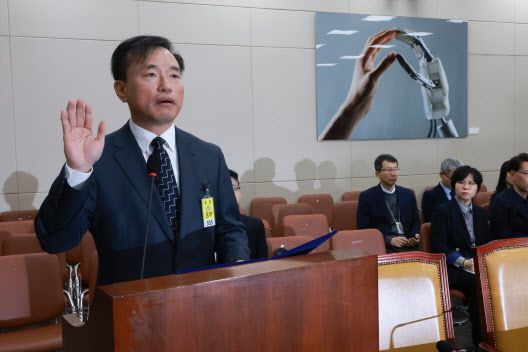 김종철 초대 방송미디어통신위원회 위원장 후보자가 16일 국회 과학기술정보방송통신위원회 인사청문회에 출석해 선서하고 있다.(사진=연합뉴스) |