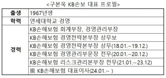 구본욱 대표는 KB손보 출범 후 첫 내부 출신 CEO로, ‘보험통’으로 불리는 양종희 KB금융지주 회장의 발탁으로 주목받았다. 그는 KB손보에서 회계부터 재무, 리스크 등 다양한 분야에서 실무 능력을 갖췄다.