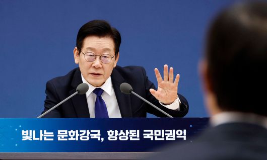 부처 업무보고 송곳 질의 이재명 대통령이 16일 세종시 정부세종컨벤션센터에서 열린 보건복지부와 문화체육관광부, 국가유산청 등의 업무보고에서 부처 업무에 대해 질의하고 있다. 이 대통령은 정부 업무보고를 역대 정부 최초로 생중계 진행하는 것과 관련해 “국정이 국민에게 투명하게 공개돼야 한다”며 “그래야 국민 중심 국정운영이 제대로 될 수 있으며 국민주권도 내실화된다”고 강조했다. 대통령실사진기자단 |