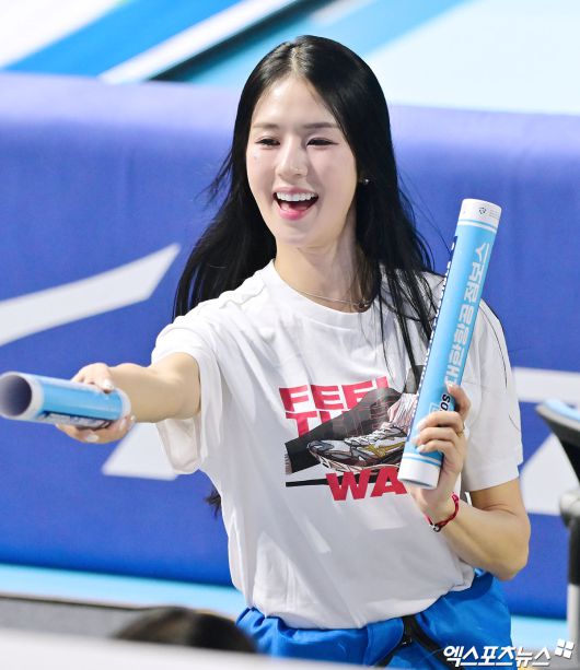 (엑스포츠뉴스 인천, 김한준 기자) 16일 오후 인천 계양체육관에서 열린 '진에어 2025-2026 V-리그' 대한항공과 현대캐피탈의 경기, 박기량 치어리더가 열띤 응원을 선보이고 있다.김한준 기자 kowel@xportsnews.com