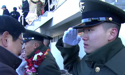 해병대 1323기 수료식에서 아버지 박지만 EG 회장에게 거수경례를 하고 있는 세현씨(오른쪽). KFN 유튜브 캡처 |