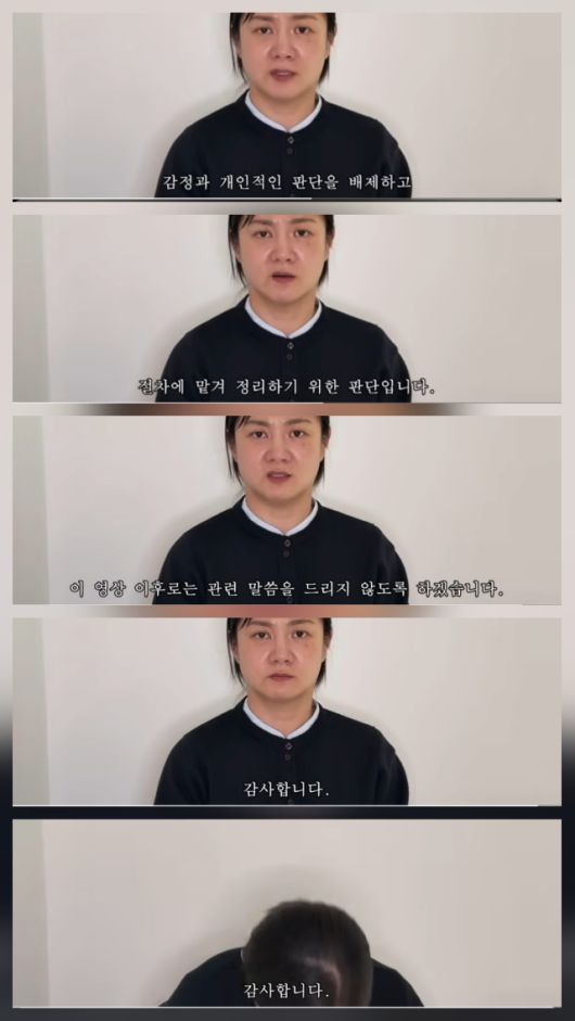 논란의 핵심에 대해서는 감정적인 해명 대신 ‘절차’를 강조했다. 그는 “사실관계를 차분히 확인해야 할 부분들이 있어 법적 절차를 진행 중”이라며 “그 과정에서 추가적인 공개 발언이나 설명은 하지 않겠다”고 선을 그었다. 또 “이 사안은 개인적인 감정이나 관계의 문제가 아니라 공식적인 절차를 통해 객관적으로 확인돼야 할 문제”라고 덧붙였다.