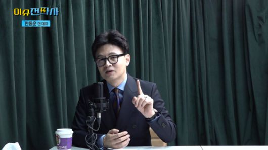 한동훈 전 국민의힘 대표가 16일 한국일보 유튜브 방송 '이슈전파사'에 출연해 정치 현안과 관련해 발언하고 있다. 이슈전파사 화면 캡처 |