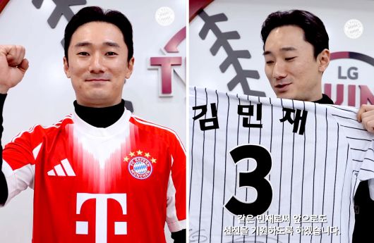 프로야구 LG 주전 2루수 신민재(29)가 한국 축구 국가대표팀 수비수 김민재(29)의 소속팀 바이에른 뮌헨(독일)으로부터 유니폼을 선물받았다. 신민재도 뮌헨 구단에 김민재의 이름과 등번호 3번을 마킹한 LG 유니폼을 전달했다.