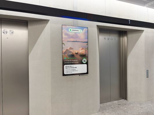 네이버가 스마트플레이스 사업자들을 위해 내놓은 맞춤형 디지털 옥외 광고(DOOH) 솔루션인 '애드부스트 스크린(ADVoost Screen)'을 엘리베이터 광고판에 적용한 사례. 네이버 제공 |