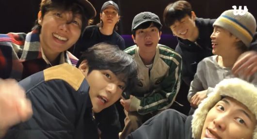 이날 방탄소년단은 진, RM, 슈가, 제이홉, 뷔, 지민, 정국 7인 완전체로 뭉쳐 안무 연습을 마친 뒤 깜짝으로 라이브를 진행한 모습이었다.