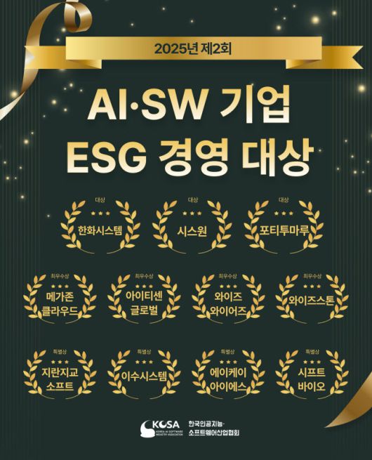 한편, ‘제2회 AI·SW기업 ESG 경영대상’ 시상식은 12월 17일 반포 플렌티컨벤션에서 열린다.