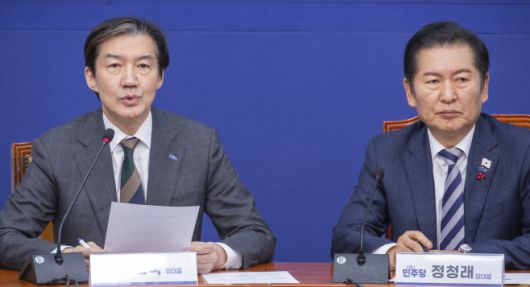 조국 조국혁신당 대표(왼쪽)가 12일 국회에서 열린 더불어민주당·개혁진보 4당 정치개혁 연석회의에서 개혁 방향에 대해 말하고 있다. /연합 |