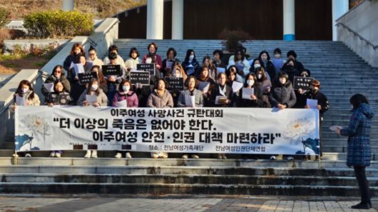 전남이주여성상담소는 "이번 사건은 막을 수 있었던 죽음이며, 더 이상의 이주여성 죽음은 결코 용납될 수 없다"며 "국가와 지자체는 책임을 회피하지 말고, 이주여성이 안전하게 살아갈 수 있는 실질적인 보호·지원 체계를 즉각 마련해야 한다"고 말했다.