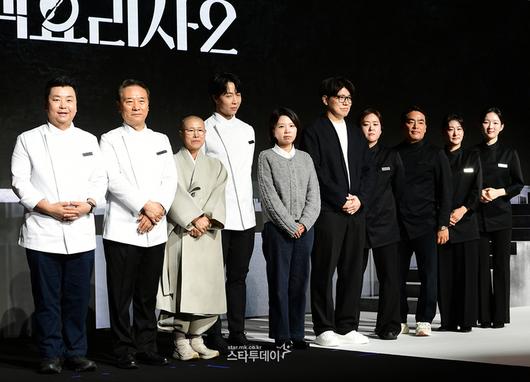 이날 제작발표회에는 출연진 선재스님, 후덕죽, 손종원, 정호영, 프렌치 파파, 중식 마녀, 술 빚는 윤주모, 아기 맹수, 김학민&김은지 PD 등이 참석했다.