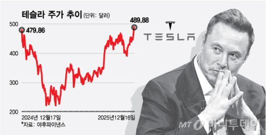 테슬라 주가는 올해 유독 부침이 심했다. 지난해 12월 최고가를 기록한 뒤 연초까지만 해도 도널드 트럼프 대통령 집권 2기 출범 기대감으로 호조를 보이다 머스크 CEO가 트럼프 행정부에서 정부효율부 수장으로 근무하면서 회사 경영에 소홀하다는 비판과 함께 정치적 구설수에 오르자 지난 4월 주가가 220달러대까지 떨어졌다. 이후 4월22일 머스크가 정부효율부 활동을 크게 줄일 거라고 말한 뒤 본격 반등 흐름을 탔다.