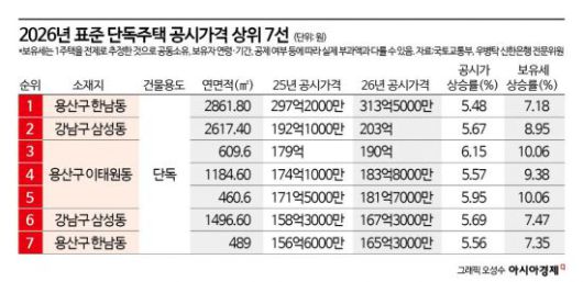 표준 단독주택 공시가격 2위는 이해욱 DL그룹 회장이 보유한 것으로 알려진 강남구 삼성동 주택이다. 내년 공시가격은 203억원으로 올해보다 5.67% 올랐다. 3위는 삼성그룹 호암재단이 용산구 이태원동에 보유한 삼성그룹의 영빈관인 승지원이다. 공시가격은 190억원으로 올해보다 6.15% 올랐다.