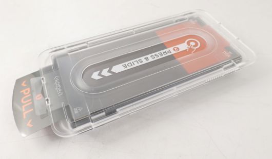 핵심은 슬라이드 방식의 가이드 프레임이다. 사용자는 제품을 스마트폰 화면 위에 올려놓고 당기고(PULL) → 누르고 밀기(PRESS & SLIDE) 단 두 단계만 수행하면 된다. 별도의 위치 조정이나 손기술이 필요 없고, 강화유리는 프레임 내부에서 자동 정렬돼 '삐뚤어진다'라는 개념 자체가 사라진다.