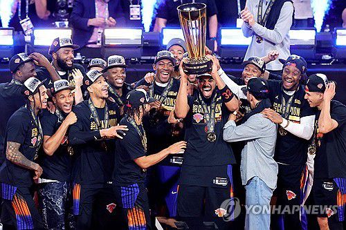 (서울=연합뉴스) 최송아 기자 = 뉴욕 닉스가 샌안토니오 스퍼스를 꺾고 미국프로농구(NBA) 시즌 중 컵대회인 NBA컵 우승을 차지했다.