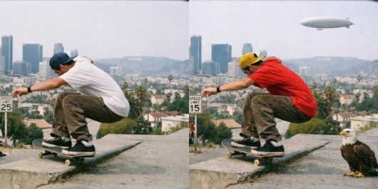 오픈에이아이(AI)가 16일(현지시각) 출시한 ‘지피티(GPT)-이미지 1.5’ 버전을 통해 스케이트 보드를 타는 남성의 옷과 모자 색깔을 비롯해 제한속도 표지판 숫자를 정밀하게 수정한 이미지. 오픈에이아이 코리아 제공 |