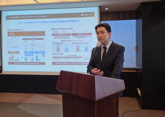 조명현 세미파이브 대표가 17일 서울 여의도 63스퀘어에서 열린 기자간담회에 참석해 향후 성장 전략을 소개하고 있다. 세미파이브 제공 |
