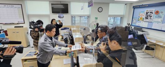 지난달 제주에서 새벽 배송을 하다 사고로 숨진 30대 쿠팡 택배 노동자 유족과 전국택배노조 제주지부 측이 17일 제주경찰청을 찾아 고소장을 제출하고 있다. |