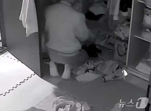 지난 5월 27일 0시 57분쯤 경북 안동의 한 아파트를 무단침입한 스토킹 범죄 피의자 30대 A 씨가 피해자의 옷장을 뒤지고 있는 모습이 홈캠에 찍혔다. 뉴스1 |