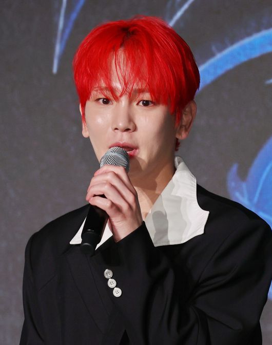 그룹 샤이니의 키가 지난 8월 11일 서울 광진구 풀만앰배서더서울이스트폴에서 열린 세 번째 솔로 앨범 ‘헌터’(HUNTER) 발매 기념 기자간담회에서 인사말을 하고 있다. 연합뉴스