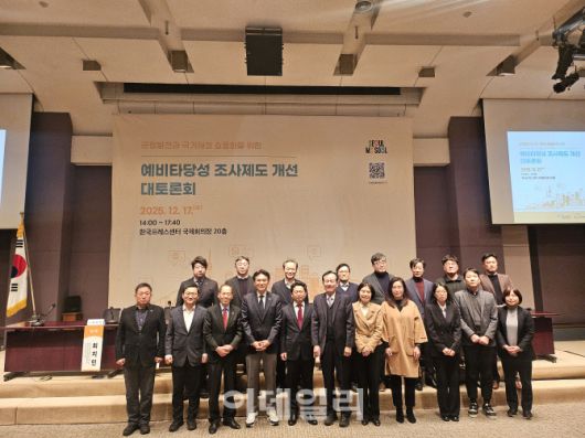 17일 서울 중구 프레스센터에서 열린 ‘예비타당성 조사제도 개선 대토론회’에서 참석자들이 기념 사진을 촬영하고 있다. (사진=김형환 기자) |