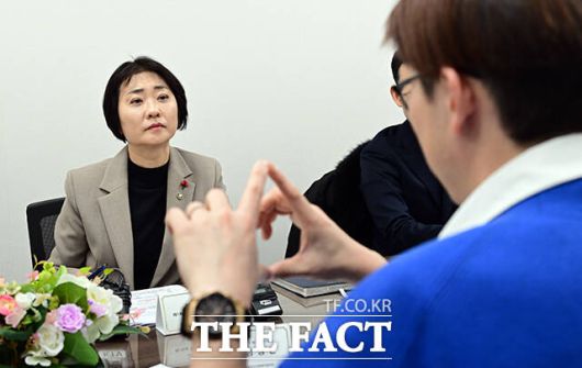 [더팩트ㅣ임영무 기자] 이스란 보건복지부 1차관(왼쪽)이 17일 오후 서울 영등포구청 별관 사랑나눔푸드뱅크 마켓 1호점에서 열린 '그냥드림' 사업 현장 간담회에 참석해 관계자의 발언을 경청하고 있다.