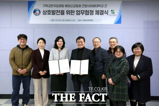 [더팩트ㅣ대전=이병수 기자] 건양사이버대학교는 16일 세계선교훈련원에서 기독교한국침례회 해외선교회(이하 FMB)와 상호 발전을 위한 업무협약(MOU)을 체결했다고 17일 밝혔다.
