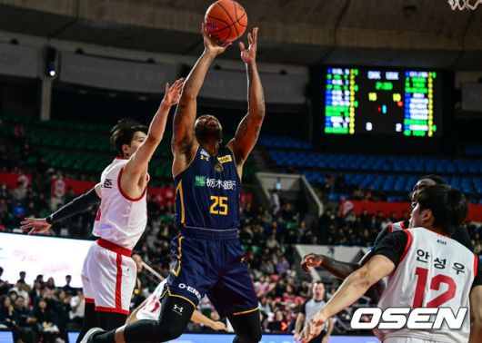 1쿼터 우츠노미야 브렉스 뉴빌 디제이가 바스켓카운트를 다내고 있다. 2025.12.17/cej@osen.co.kr