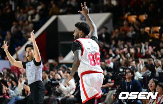 4쿼터 SK 먼로가 3점슛 세리머니를 하고 있다. 2025.12.17/cej@osen.co.kr