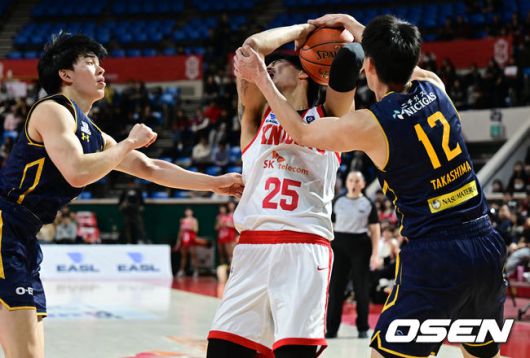 [OSEN=잠실학생체, 조은정 기자]17일 서울 송파구 잠실 학생체육관에서 2025-2026 동아시아 슈퍼리그 (EASL) 서울 SK 와 일본 우츠노미야 브렉스의 경기가 열렸다.
