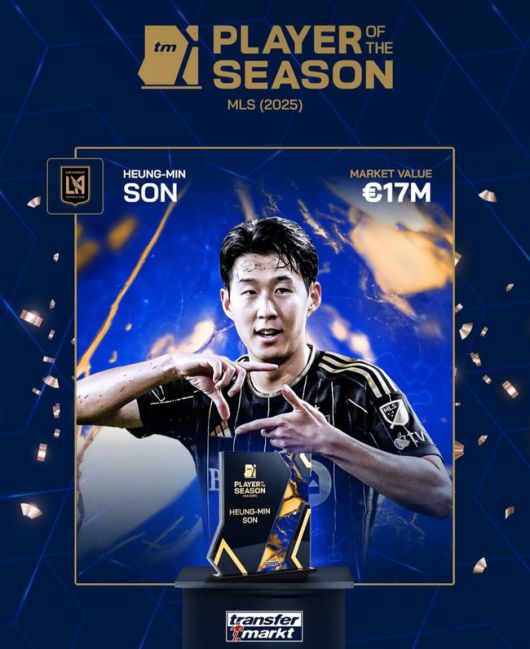 축구통계매체 '트랜스퍼마크트'는 18일(이하 한국시간) 자체 선정 미국 메이저리그사커(MLS) 올해의 선수를 공개했다. 바로 손흥민이었다. 손흥민은 8월에 토트넘 홋스퍼 생활을 정리하고 LAFC에 합류하면서 MLS에 왔다. MLS 13경기(플레이오프 포함)를 뛰고 12골 4도움을 기록하면서 손흥민 신드롬을 미국에서도 일으켰다.