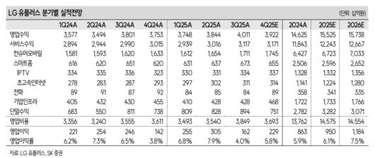 주주환원 강화도 주가 재평가 요인으로 꼽았다. LG유플러스는 지난해 자사주 1000억 원어치를 소각했고, 올해부터 내년까지 800억 원 규모의 자사주를 추가 매입 중이다. 올해 배당은 유통주식 수 감소 효과를 반영해 주당 660원, 내년에는 실적 개선에 힘입어 700원까지 늘어날 것으로 전망했다.