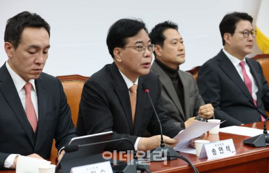 [이데일리 노진환 기자] 송언석 국민의힘 원내대표가 18일 서울 여의도 국회에서 열린 최고위원회의에서 모두발언을 하고 있다.