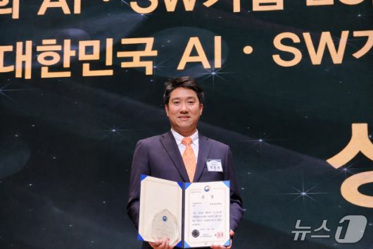 라온시큐어 대한민국 AI·SW기업 경쟁력 대상 부총리 겸 과기정통부 장관상 수상. 박종원 라온시큐어 경영기획본부장이 기념사진을 찍고 있다.(라온시큐어 제공) |