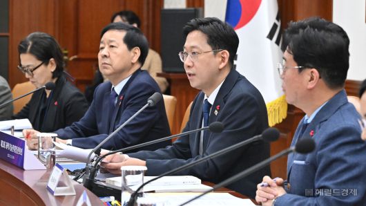 [헤럴드경제=임세준 기자] 배경훈(오른쪽 두 번째) 부총리 겸 과학기술정보통신부 장관이 18일 오전 서울 종로구 정부서울청사에서 열린 과학기술관계장관회의에서 모두발언을 하고 있다.