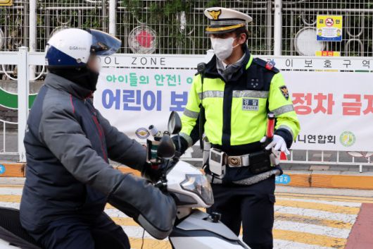 대대적인 교통단속이 실시된 4일 서울 강남구 논현초등학교 인근 어린이보호구역에서 경찰이 음주운전 및 정지선 위반 차량을 단속하고 있다. (사진=연합뉴스) |
