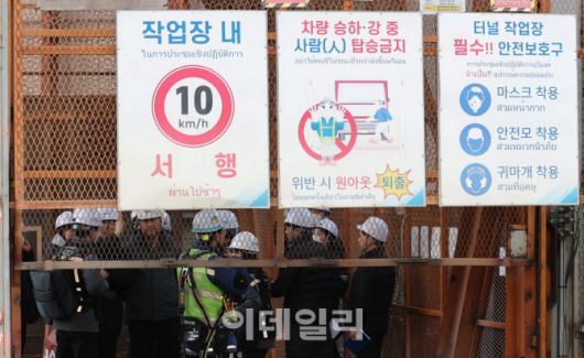 [이데일리 노진환 기자] 18일 서울 여의도역 신안산선 공사 현장에서 노동자 7명이 매몰되는 사고가 발생, 관계자들이 현장을 통제하고 있다.