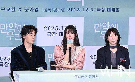 기자간담회에는 김도영 감독과 배우 구교환, 문가영이 참석했다.