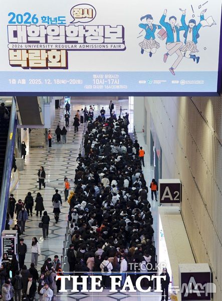 18일 '오승혁의 '현장''은 서울 강남구 코엑스에서 열린 2026학년도 정시 대학입학정보박람회를 찾았다. 개장 전부터 학부모와 입시생들이 입장하기 위해 기다리고 있다. /뉴시스 |