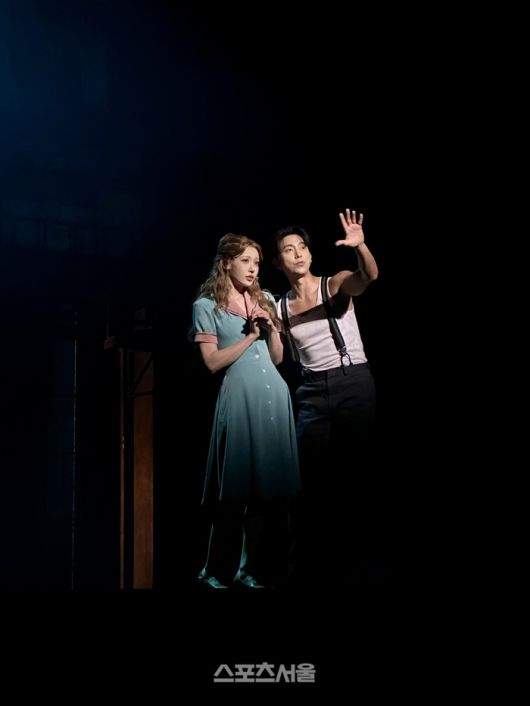 18일 뮤지컬 ‘보니 앤 클라이드’ 프레스콜에서 (왼쪽부터) ‘클라이드’ 역 홍금비와 ‘보니’ 역 윤현빈이 대표 넘버 ‘나를 기억하게 해줄게’를 시연하고 있다. 사진 | 표권향 기자 gioia@sportsseoul.com |