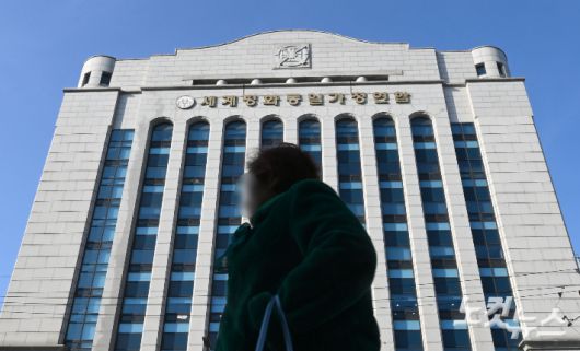 경찰이 정치권 인사들의 통일교 금품 수수 의혹과 관련해 첫 강제수사에 나선 15일 서울 용산구 세계평화통일가정연합 한국본부의 모습. 경찰청 특별전담수사팀은 이날 오전 9시께부터 경기 가평 통일교 천정궁과 서울 용산구 통일교 서울본부 등 10곳에 대해 압수수색영장을 집행 중이다. 류영주 기자 |