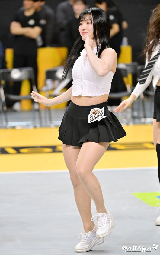 (엑스포츠뉴스 의정부, 김한준 기자) 18일 오후 경기도 의정부 경민대체육관에서 열린 '진에어 2025-2026 V-리그' KB손해보험과 삼성화재의 경기, 조다정 치어리더가 멋진 공연을 선보이고 있다.김한준 기자 kowel@xportsnews.com
