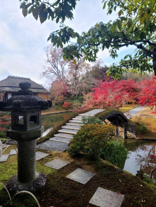 첫 번째 목적지는 사이호지(西芳寺)였다. 정원 전체에 120여 종의 이끼가 덮여 있어 ‘이끼 정원’으로 불린다. 중앙 연못을 따라 조성된 산책로를 거닐며 정원을 감상하는 지천회유식 정원은 비현실적으로 아름다웠다. 개울과 경사를 따라 구릉처럼 펼쳐지는 정원은 발길 닿는 곳마다 초록 이끼로 뒤덮여 있었고, 단풍나무는 빨갛고 노란 군락의 풍경을 만들어 냈다.