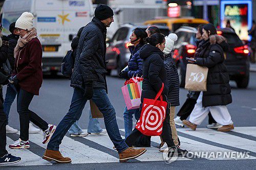 지난 11일(현지시간) 쇼핑백 들고 뉴욕 거리 걷는 행인 |