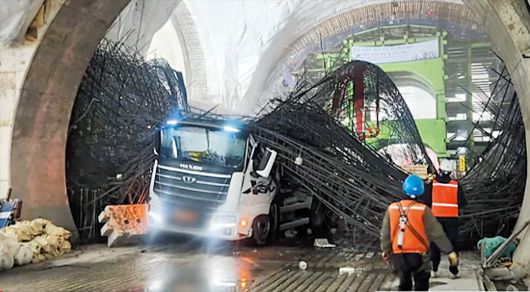 YTN18일 오후 1시 22분쯤 서울 여의도 신안산선 복선전철 공사 현장에서 붕괴 사고가 발생했다. 철근 구조물이 무너져 덤프트럭을 덮친 모습. 이 사고로 작업자 1명이 숨지고 1명이 부상을 당했다. 신안산선 공사 현장에선 지난 4월에도 지하터널(경기 광명)이 무너져 작업자 1명이 숨지고 1명이 다쳤다. 두 곳 모두 포스코이앤씨가 시공을 맡고 있다. |