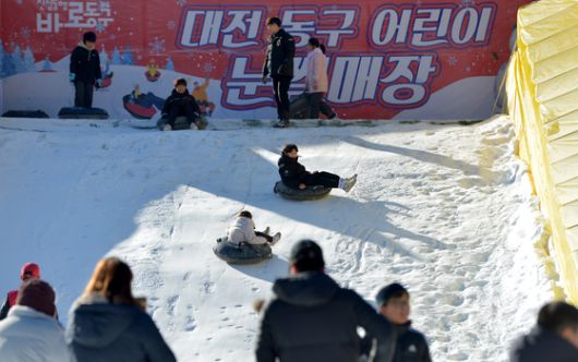 지난해 1월 대전시 동구 어린이 눈썰매장을 찾은 어린이들이 추위를 잊고 즐거운 시간을 보내고 있다. 김성태 객원기자 |