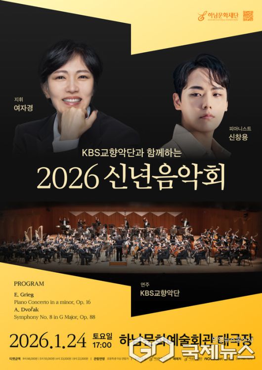 (하남=국제뉴스) 강정훈 기자 = 하남문화재단은 대한민국을 대표하는 KBS교향악단과 함께하는 「2026년 신년음악회」를 오는 2026년 1월 24일(토) 오후 5시, 하남문화예술회관 대극장에서 개최한다고 밝혔다.