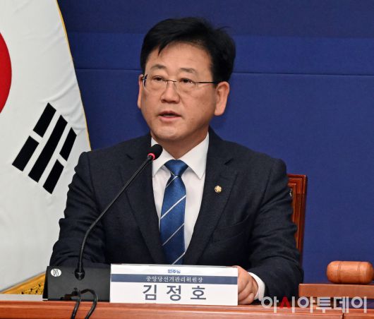 아시아투데이 송의주 기자 = 더불어민주당 중앙당선거관리위원장인 김정호 의원이 19일 국회에서 열린 최고위원 보궐선거 공명선거실천서약식에서 발언을 하고 있다. ⓒ "젊은 파워, 모바일 넘버원 아시아투데이"